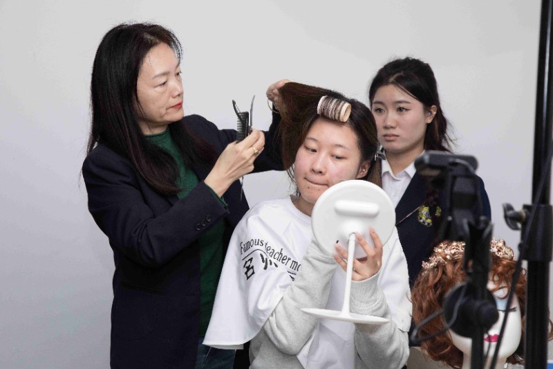 白丽君老师如同一朵绽放在美妆世界的璀璨之花。在美妆造型课上,她以灵动的双手,为我们徐徐展开了一幅新娘造型的绝美画卷。那精致的妆容,似清晨的露珠在花瓣上闪耀,散发着纯净而迷人的光芒。每一笔的勾勒,每一抹色彩的晕染,都是对美丽的极致诠释。白丽君老师仿佛是一位神奇的魔法师,将新娘的娇羞与甜蜜、优雅与高贵完美融合,让人仿佛看到了一场梦幻般的婚礼,那美丽的新娘造型妆,如诗如画,惊艳了时光,温柔了岁月。