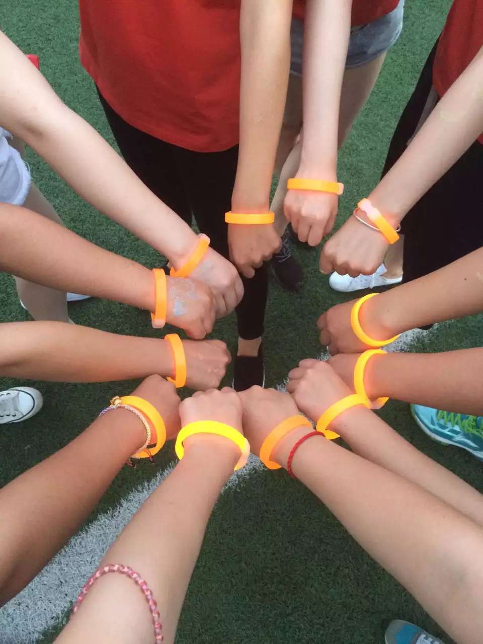 2、跑前按系排队,点实到人数,分发荧光手环,各系领队及联络人带领组员做准备活动。